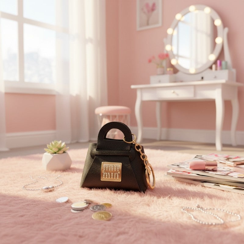 Mini Leather Case Keychain – Navy Blue with Bunny Charm