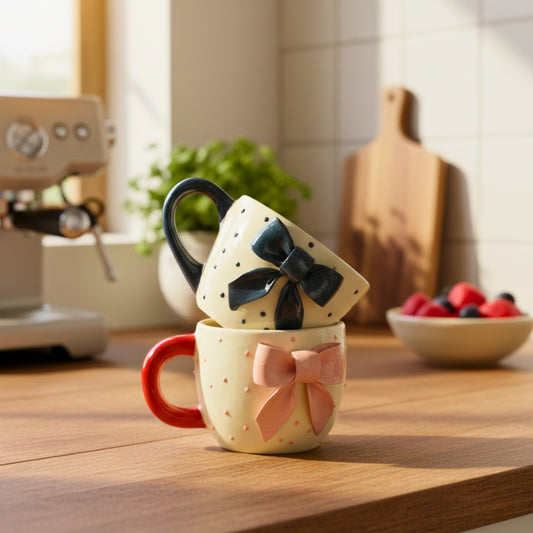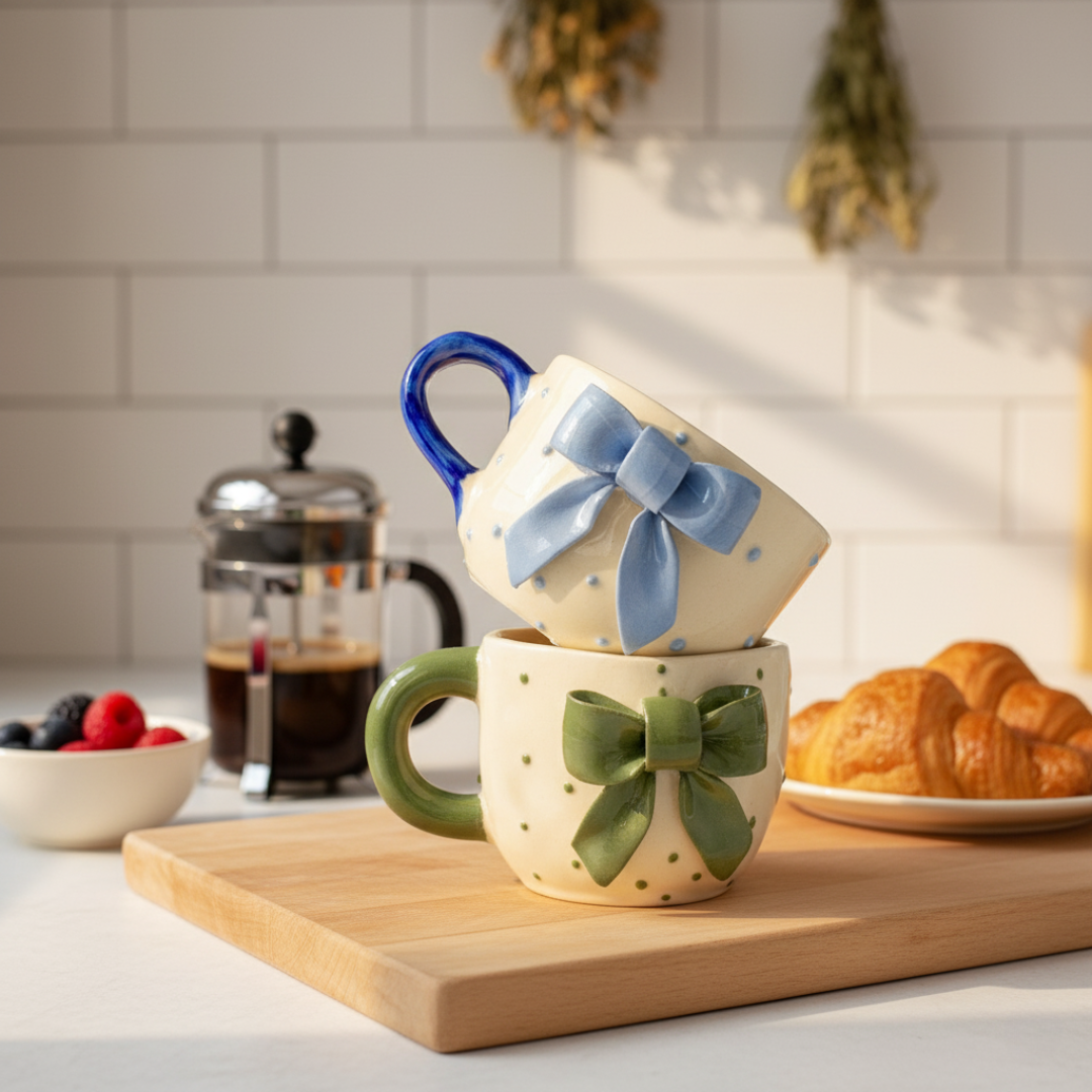 Handmade Ceramic Mug with Pink Bow – Elegant Pastel Drinkware